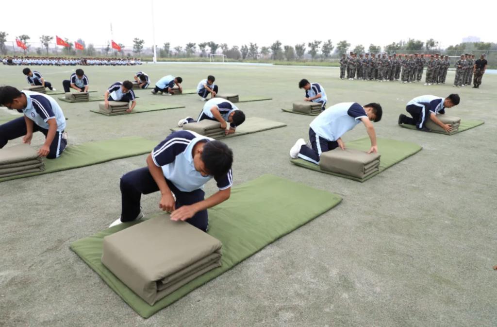 平铺、压实、折叠、修角,学生们每一个动作都精准利落,一气呵成。叠军被是一项重要的训练项目,不仅能提高学生们的内务整理水平,更能培养他们细致入微的态度和严谨细致的作风,为校园生活打下坚实的基础。