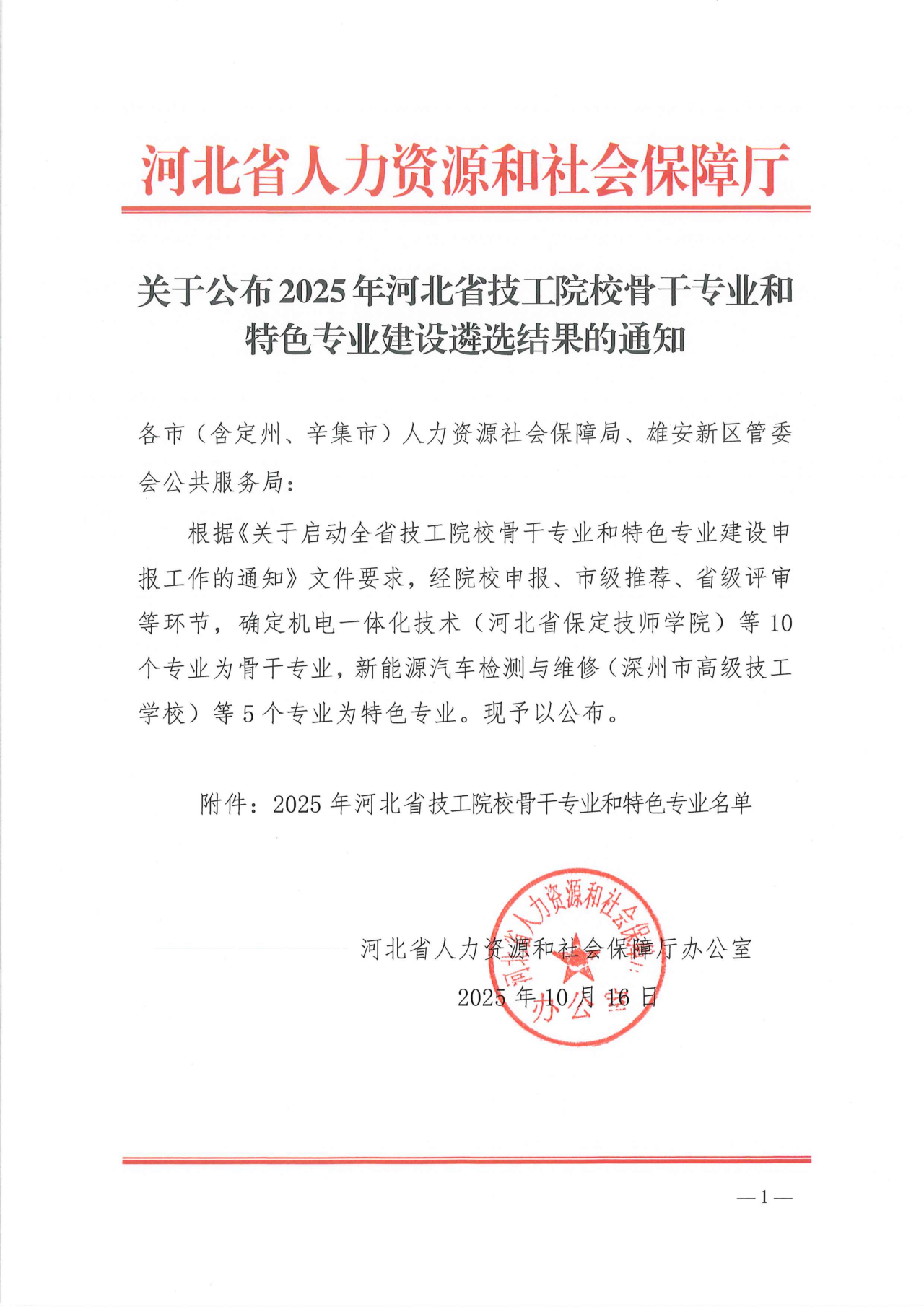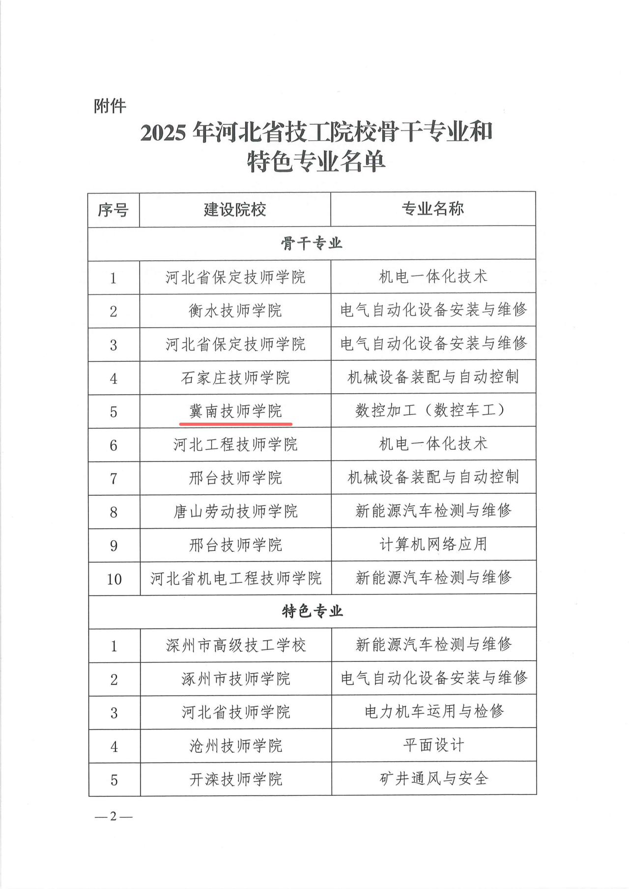 近日,河北省人力资源和社会保障厅正式公布2025年技工院校骨干专业和特色专业建设遴选结果。经过层层选拔与严格评审,我院数控加工(数控车工)专业脱颖而出,成功入选2025年河北省技工院校骨干专业!