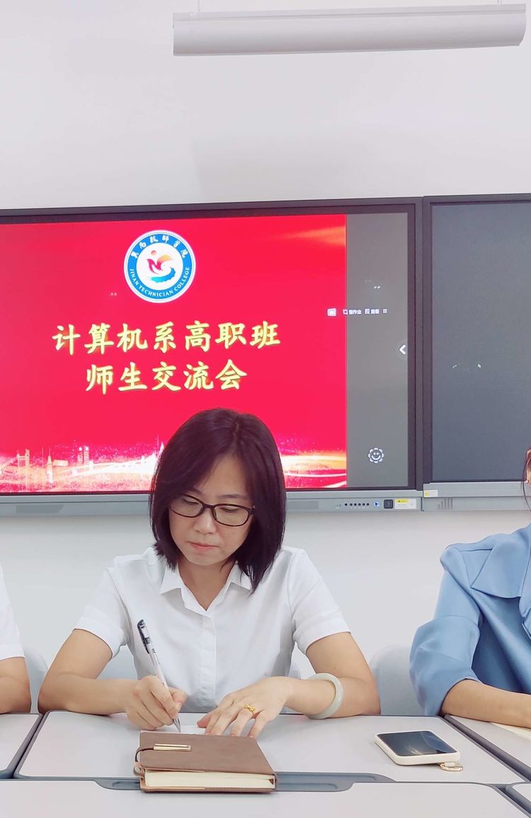 计算机系负责人张巍主任希望同学们重视这次座谈会,畅所欲言,把想说的、该说的、要说的都说出来,共同促进学院教学水平与质量的提高;为进一步加强学生的操作能力,学院同意晚自习期间高职生可以去机房学习。